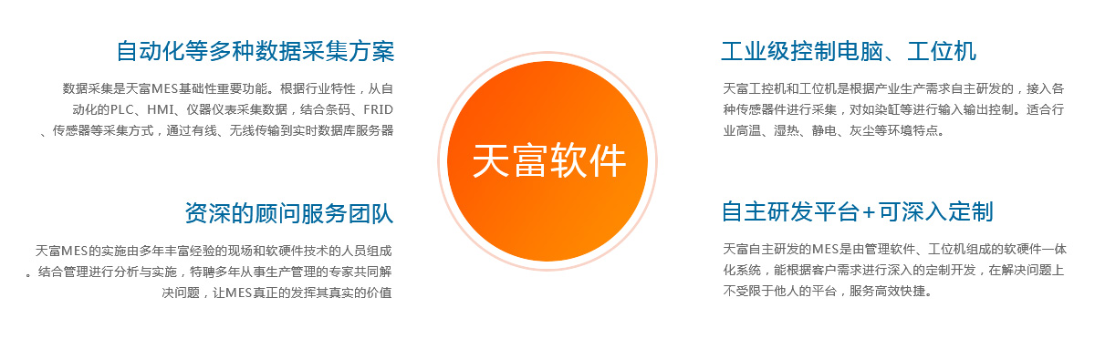 支(zhī)持(chí)拆(chāi)卡合卡:自動從(cóng)ERP按工序拆分合卡分解(jiě)出當前工序配方(fāng)參數, 極大的(de)減少下單改(gǎi)單(dān)數量,實(shí)現生產的(de)進(jìn)度、質量、產量的跟蹤。 多種靈活采集手段:工位機、條形碼/二(èr)維碼(mǎ)、RFID、儀(yí)器(qì)儀表、傳感(gǎn)器、PLC、HMI接口等(děng)。 |
