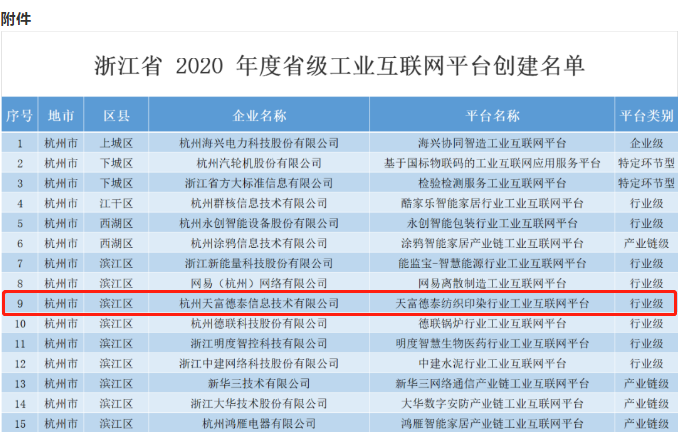 2020年10月12日,浙(zhè)江省經濟和信(xìn)息(xī)化廳(tīng)正式公布浙江(jiāng)省2020年度省級工業互聯網平台創建名單,《草莓视频在线紡織印染行業工業互聯網平台》入選創建名單。
