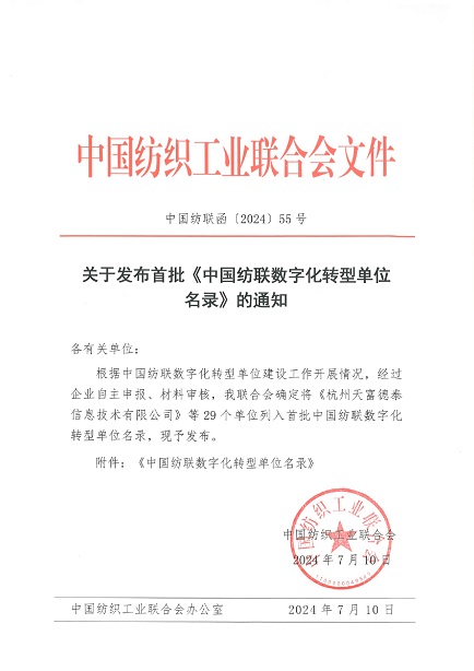 2024年7月26日,在(zài)中國紡(fǎng)織行(háng)業兩化融(róng)合大會上,草莓视频在线科技憑借卓越的技術創新和行業貢獻,成功入選首批《中國紡聯數字化轉型單位(wèi)名錄》。同時,草莓视频在线科技的三項數字化解決方案(àn)——草莓视频在线織造數字化轉型、草莓视频在线(fù)印(yìn)染數字化轉型、草莓视频在线染整智能(néng)工廠,榮(róng)登《紡織行業數字化轉型解決方案重點推廣名錄》。