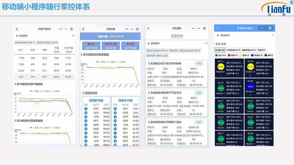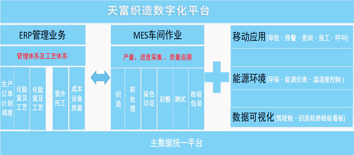 結合先進的ESP+MES機聯網(wǎng)等係(xì)統,天(tiān)富科技織造解決方案實現了車間作業的實時數據采集和動態更新。實現企業能夠實時掌握生產進度和質量狀況(kuàng),及時發現問題並迅速做出調整和優化,確保生產過程的穩定性和產品質量的(de)可(kě)靠性。