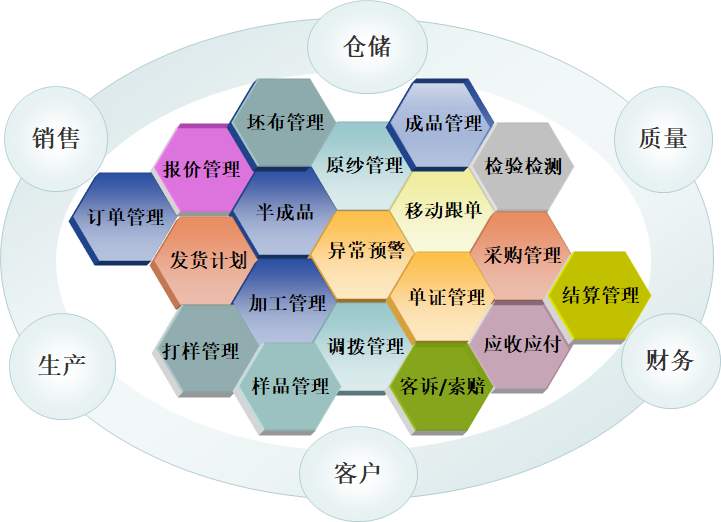 結合移動跟單係統,可隨時了解每張訂單的整個流轉過程,包括接單、下坯布采購單、坯布入庫、下染色加工指示(shì)單、坯布發至染廠、染廠投坯、染廠送布至成品倉庫(kù)、成品出貨至客戶、客戶收款等。