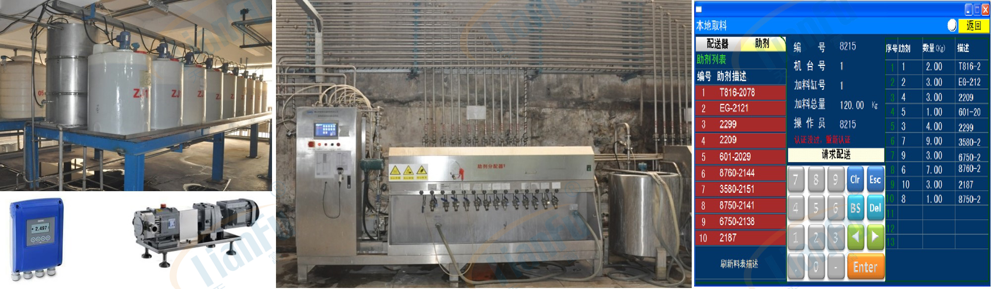 ◆針對加水量大,對應各(gè)機(jī)台加料桶都有對應加水支(zhī)路。利用單獨流(liú)量(liàng)計計量,實現對助劑和水同步計量,提高分配效率