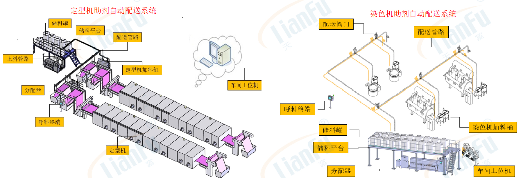 染料助劑(jì)通過精確計量集(jí)中配(pèi)送,提高(gāo)產品品質,降低回修率